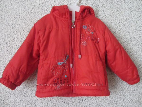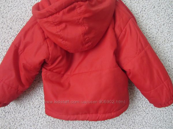 Продам осенюю курточку красного цвета с капюшоном , размер L 7 -19мес (68-8 0 см), на флисовой подкладке, на молнии. Есть два косых кармана. Подойдет на теплую весну осень (от +7 до+18). Курточка в очень хорошем состоянии.Недостатки - на подкладке есть немного пятен черного цвета (видно на фото) , но они заметны только при близком рассмотрении, при носке их конечно не видно. ОГ 66 см, длина курточки 3 3 см, рукав 27 см, плечо 7,5 см