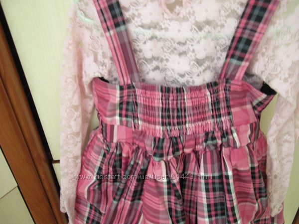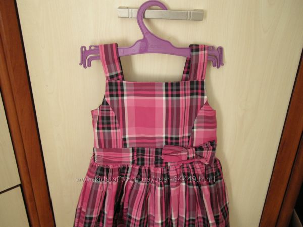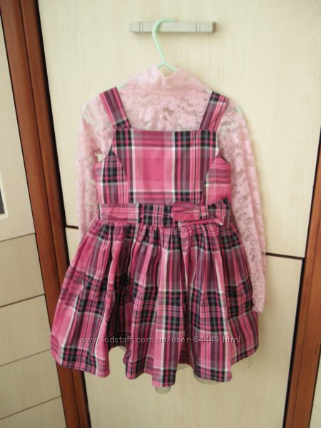 Нарядное платье Джордж, размер на бирке 3-4 года , 98-104 см роста, но можно носить дольше, состояние нового, очень хорошая ткань , тафтаК нему розовый ажурный гольфик , очень хорошо вместе смотрится