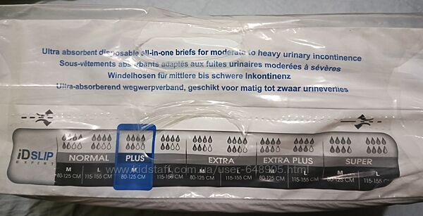 Подгузники бельгийской фирмы ID Expert Slip Plus Medium - эффективное решение для людей с проблемой недержания мочи средней и тяжелой степени./