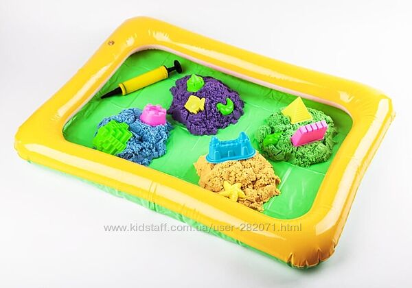 В подарок прилагается кинетический песок, формочки для лепки и надувной песочный бассейн!