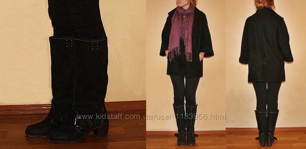 Демисезонные итальянские сапоги в стиле дерби, из нубука отличного качества. Очень удобные и практичные. стелька 24.5см. подошва натуральная! отлично чистятся.Без дефектов. высота от пола-43 высота каблука--5Состав: кожа 100%