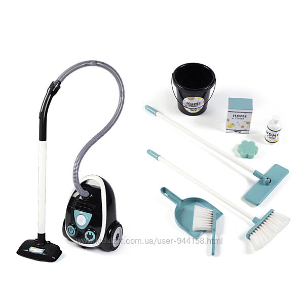 Набор состоит из тележки, на которую можно поставить электронный пылесос, издающий реалистичные звуки уборки, и аксессуаров.