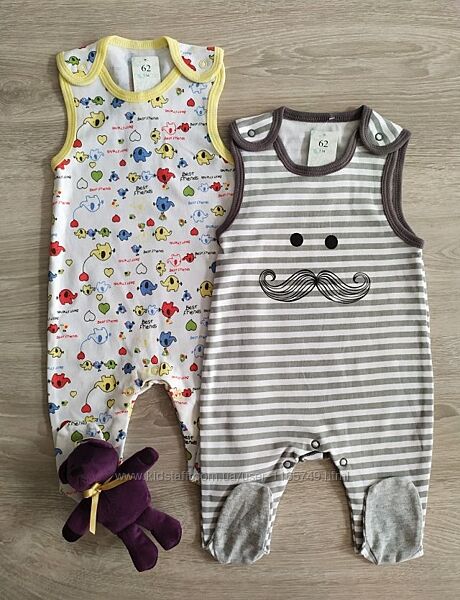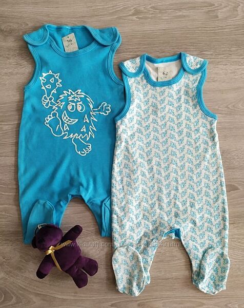 На хлопчика та дівчинку. Виробництво Польща. Склад бавовна 100%.Усі розміри: 56,62,68,74,80,86 на вік від 0 до 18 місяців. Торгова марка "Natural club", "C+3", "Cloth tiger". Дуже м´які, приємні до тіла.