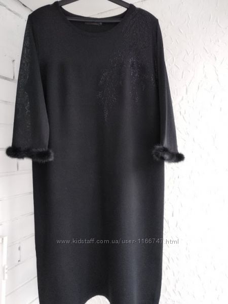 Шикарное и изумительное по красоте платье,пр-во Турция!Замеры: грудь 56, талия 56,бедра 56,длина 103 ,рукав 47, плечи 45 см.Цвет черный, ткань трикотажная , идеально держит форму!плотная,качество!!!ТУРЦИЯ!НОВОЕ!!!Подойдет для торжественного случая и для офиса руководителю фирмы.Платье состоит из плотной и тонкой трикотажной ткани ,идущей как элемент украшения, за счет этого полный комфорт при ношении.Натуральная норка по низу рукава три четверти.Для видной статной дамы!Торга нет