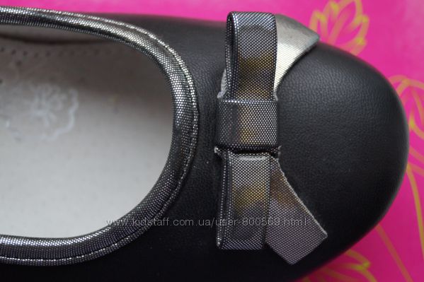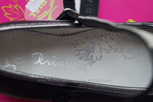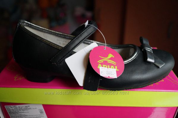 Новые чёрные туфли для девочки, ТМ « Arial » на небольшом устойчивом каблучке высотой 2,8 см. Материал верха: искусственная кожа, внутри – полностью натуральная кожаная ортопедическая стелька. Туфли мягенькие, не жесткие. Застегиваются на регулируемую липучку для максимальной фиксации по полноте ножки. Впереди декорированы милым серебристым бантиком. Жёсткий задник. Подошва и каблучёк выполнены из прочной резины (каблучок не обтянут кожей и не будет сцарапываться). Туфельки очень удобные и комфортные.Замеры: для размера 31: