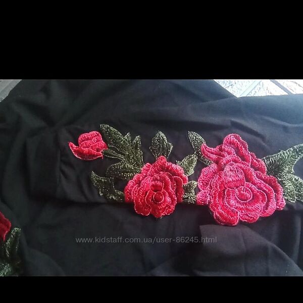 Стильне худі з тканини двонитка доброї якості, на рукавах файна вишита аплікація троянди, виміри: довжина - 63, ширина - 50, рукав від горловини - 70 ( по бірці р42 )Другие объявления продавца