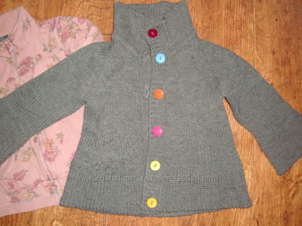 _Серая вязанная кофта-реглан с разноцветными пуговками "Bonprix" р. 92-98.(150грн.)
