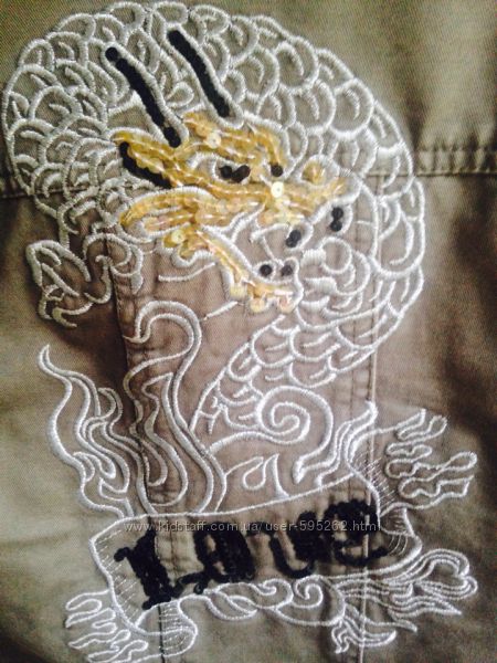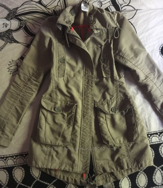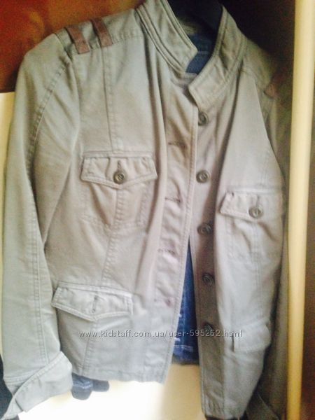 Стильная куртка - пиджак Mexx с вышивкой паетками миллитари S-M, оригинал, с широкими кармашками, рельефными вытачками, смотрится шикарно! Замеры: плечи38-длина58-рукава с отворотами67 идеально сядет на грудь до 90-талия до 75Я носила пару раз как куртку, т.к великоват как пиджак) Внутри на воротнике (не видно в носке) есть желтоватое пятнышко (стирать не пробовала). В остальном дефектов никаких нет! Вещь отличная и качественная, плотный коттон, покупался дорого! Возврата нет! 600 грн