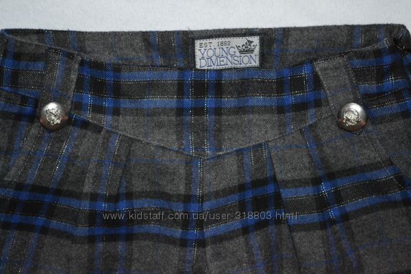 Шорты Young Dimension 9 - 10 лет, 134 - 140 см. Ткань верха 65% полиэстер и 35% вискоза, подкладка 100% полиэстер, впереди 2 кармашка, пояс не стягивается, сбоку замочек, дефектов нет, ид. сост.Замеры: пояс - 32.5 см,