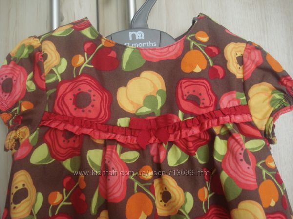 Продам платье фирмы джимбори 12-18М, хлопок (не мягкий), состояние хорошее без дефектов, немного распустила резинку на рукавчиках очень маленькие были и сильно пережимали руку, на фото 5,6,7,8 видно. (только один рукав спереди а второй сзади), при носке совершенно не видно.замерыдл.от плеча до низу-45,5см