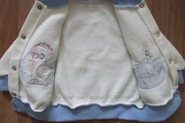 Новый детский костюм, с плотным начесом, на кнопках, 100% хлопок. Цвет - светло бежевый с голубым (цвет соответствует фото 1). Есть маленькое пятнышко на плече (фото 7), поэтому уценен.На бирке указан размер 48.