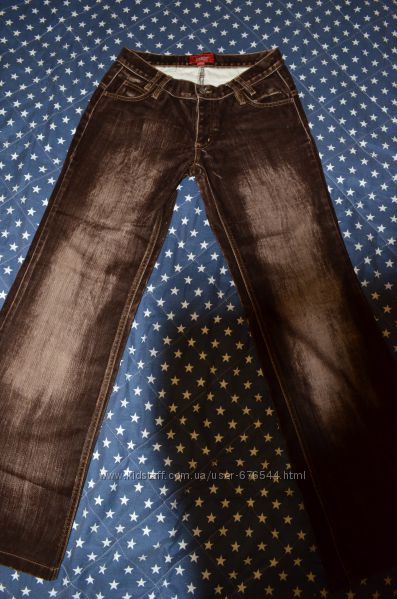 Брендовые джинсы HOLBORN Jeans product. 100% оригинал, отличного качества. Темно-коричневого цвета (темный шоколад) с протертостями, провелюренные, плотные, сезон осень-зима. Прямого покроя. Состав: 68% cotton,15% viscosa 17% acrylic. Размер 36.полуобхват пояса 37,5 см, пл. бедер на уровне карманов 43,5, ниже карманов на 5 см -- 46 см, ниже карманов на 10 см -- 49 см. Длина брюк по боковому внешнему шву -- 104 см, по внутреннему- 82 см.