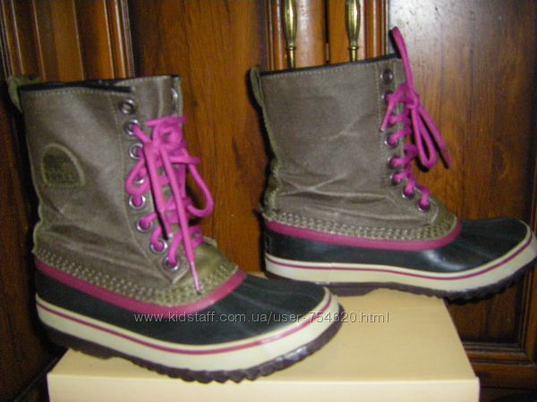 ф.7 ЗЕЛЕНОВАТО-СЕРОЕ голенище , малиновые шнурки. Суперские качественные канадские сапожки-сноубутсы Sorel, нереально теплые с вставляющимся добротным войлочным валянком, Подошва валянка укреплена и дополнительно обработана плотным теплоизоляционным материалом. Состояние парадно-выходное.