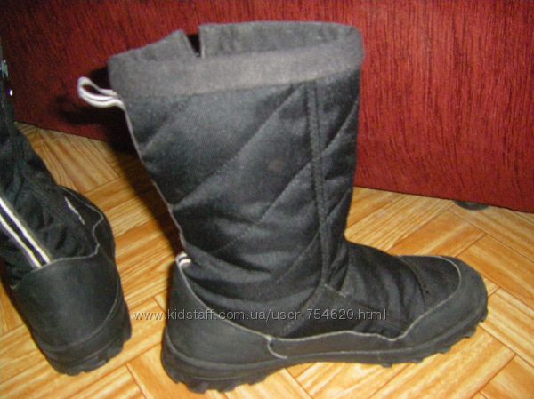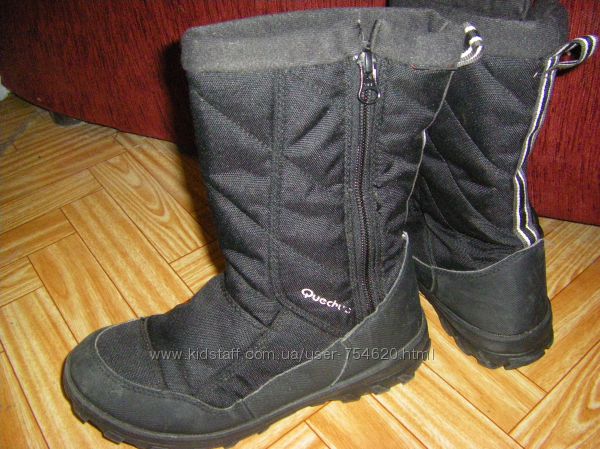 ф.4-5 ЧЕРНЫЕ теплые мембранные сапожки Quechua, Англия. Состояние отличное. Не промокают, непромокаемый текстиль. Хорошие в носке. Удобые. По стельке 22,5-23 см, размер 35. Непромокаемый верх, внутри тонкий искуственный мех, плотная стелька, мембрана Теплые и удобные. - 430 грн Похожие черные Елефант 23 см стелька, дутики - 290 грн