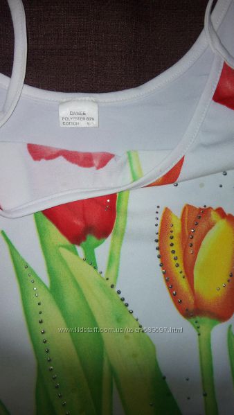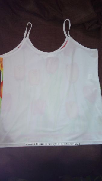 Яркий и нарядный топ с тюльпанами. Размер XL. Принт украшен мелкими стразиками. Состояние отличное.Куплен в Штатах.