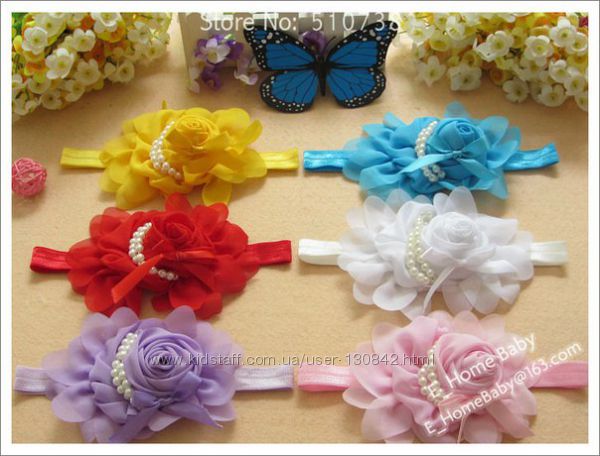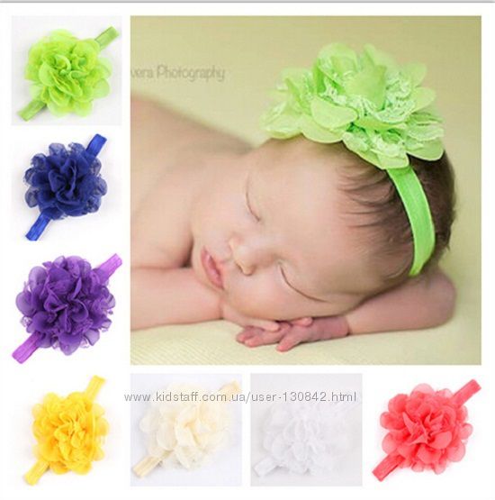Повязочки для маленьких принцесс с цветочком. Очень нарядно, празднично и нежно смотрятся на головке.
