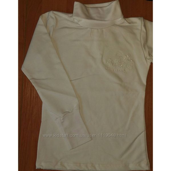 Полотно футер-стрейч 2-нитка (95% бавовна, 5% лайкра) без начісу, але щільний. Якість відмінна ! не скочується, не втрачає форму після прання, зручний манжет. Чудовий варіант для школи. Україна. В наявності : білий - зріст 122.122 : довжина по спинці, по центру, 45, , ширина 31,5, рукав 43+ плече 7.
