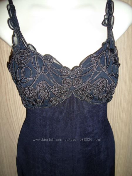шикарное- очень красивое- нарядное платье, на стройную девушку, лягающее по силуэту, которое подчёркивает все прелести женской фигурки (ткань тяжёлая, тягучая, тёмно-синего, чернильного цвета)в лиф вшиты чашечки 2-3размера