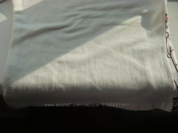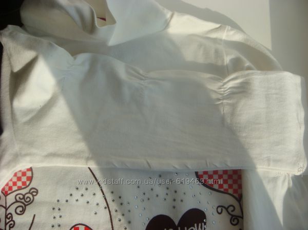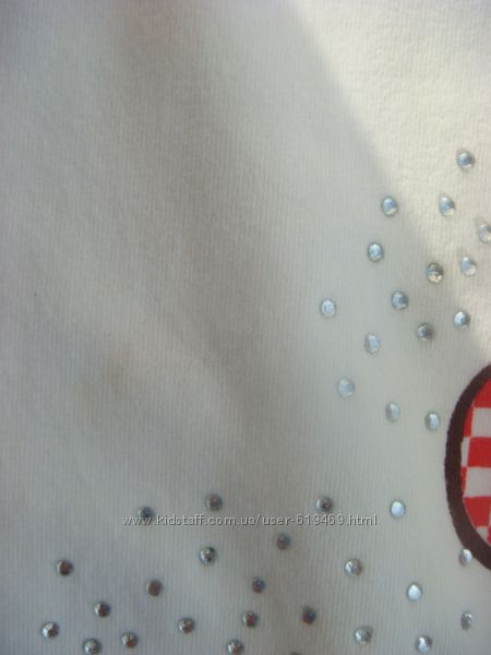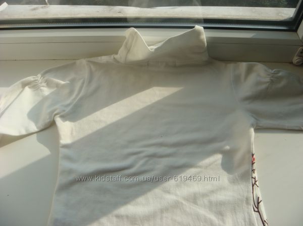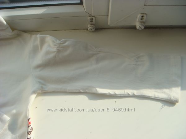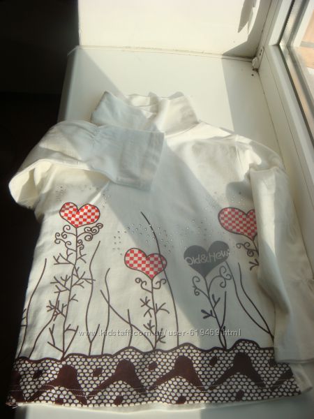 Новый х/б реглан на девочку, турецкой фирмы, очень хорошее качество, не хуже американских. Купен на распродаже, есть малюсенькое желтое пятнышко - легко отстирается - на фото видно. длина - 39 см длина рукава - 34 см ПОг - 32 см.
