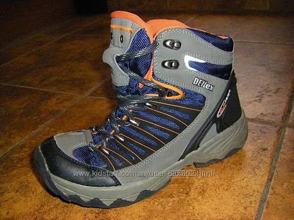 ф.9 СЕРЫЕ с синим Ботинки Деи текс - Кортина р. 39 размер на мальчика. Длина по стельке 25 см, ев.39, англ.4, ам.5.. Состояние хорошее. Отлично носятся, нога не промокает в снегу и в оттепель. Cверху плотная ткань, толстая подошва. Внутри ботинок мех и теплая стелька. - 450 грн