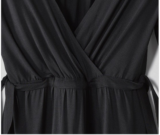 Красивое и элегантное платье с V-ным вырезом, рукав 3/4, фасон с завышенной талией позволяет скрыть кое-какие недостатки, а по-разному завязанный пояс подчеркивает зону декольте.