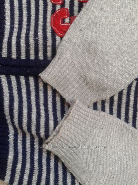Кофта на мальчика,состояние на 4.На молнии отломались 2 зубчика ( фото видно ),но застежка работает хорошо,теплая.Замеры: - длина по спинке - 33, - рукав от плеча- 36 - рукав внутренний шов - 25, - ПО под мышками - 28. Возврата нет.