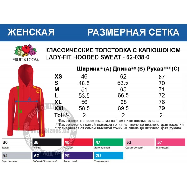 Подробное описание: Толстовка женская с начесом и капюшоном Lady-FIT Fruit of the loom