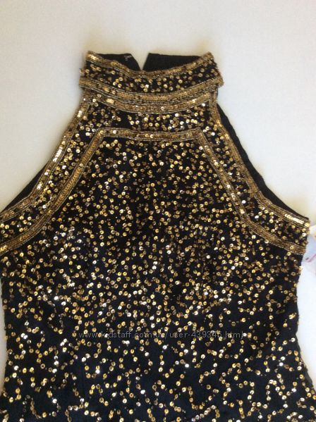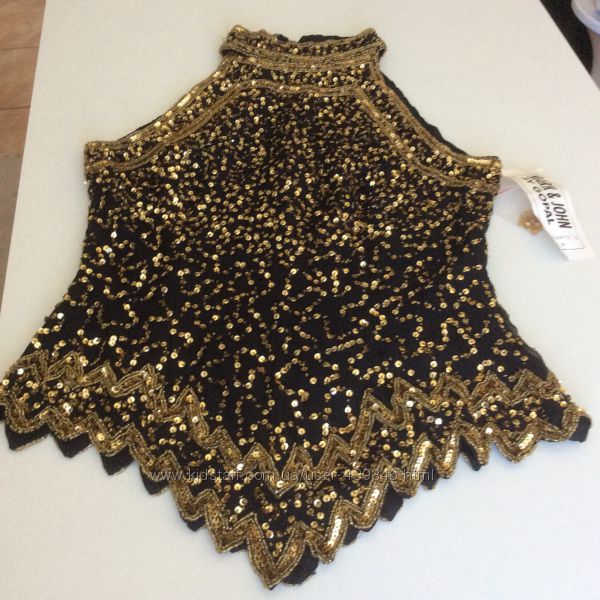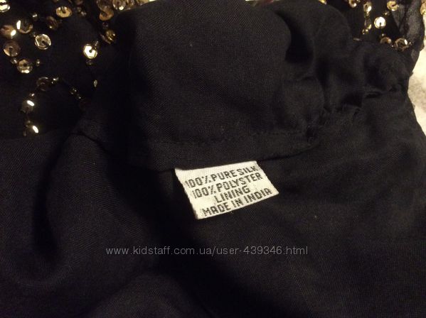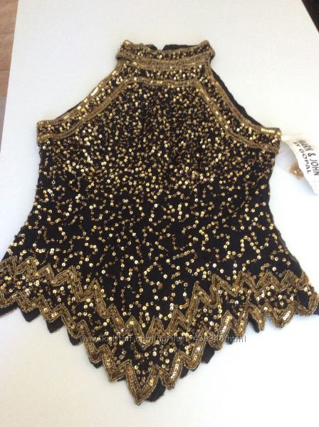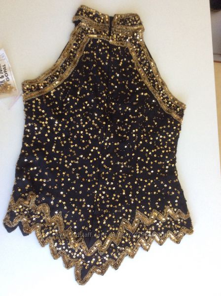 Вечерний топ черный в золотых паетках, р. M, чистый шелк