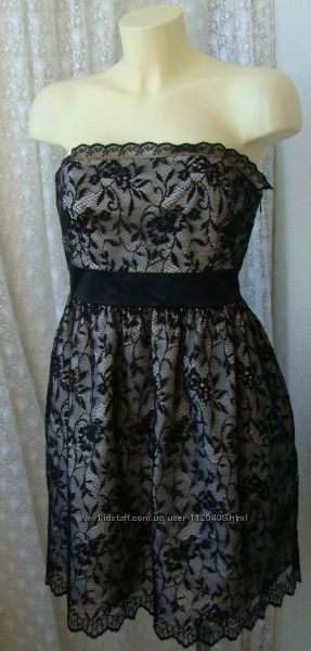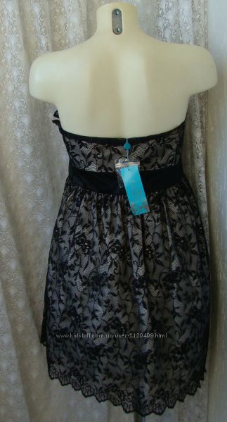 Платье в отличном состоянии, не носилось, сток с этикеткой, магазинная цена 65 английских фунтов. Недостатков не нахожу.Состав не известен нет бирки. По внешнему виду полиэстер и нейлон. Верхняя ткань ажурный гипюр. Подкладка бежевого цвета, плотненькая, скользящая. Вторая подкладка черная с подюбником из фатина.
