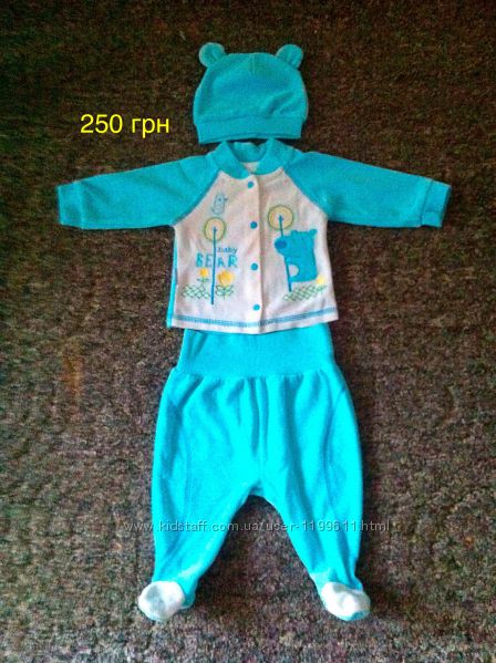 Подробное описание: Комплект Absorba кофта, ползунки, человечек 0-18 мес, рост 55-86см
