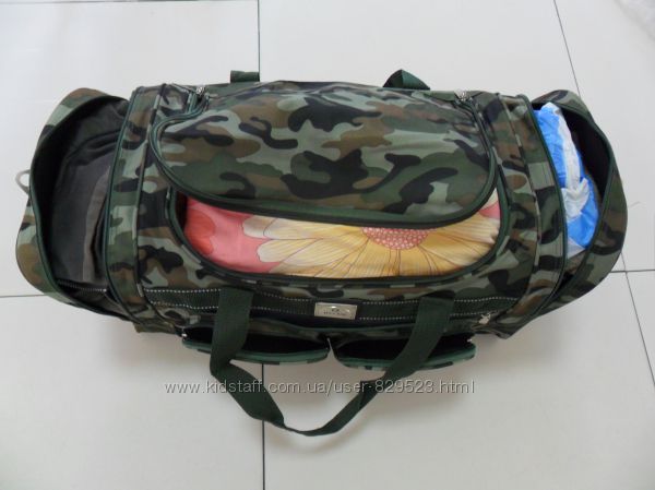 Сумка дорожная "Yins bag", "Magda" , - камуфляж. Маленькая, средняя и большая. 450 грн., 550 грн. и 650 грн. Плотная, повышенной прочности ткань с пропиткой. Изнутри ткань дополнительно обработана влагозащитным покрытием. - Размеры сумок и цены:- размер 1. Маленькая : - 48 х 33 х 25 см. Цена: 450 грн. Внешний объем - 40 литров.
