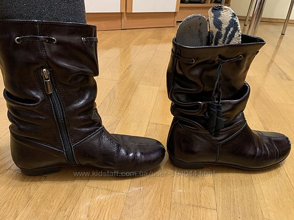 Чоботи демисезонні БЕРЕГИНЯ, шкіра, розмір 36, але йде на 35, устілка 23, але коли повний 36 то можуть тиснути. Ми носили, коли був у нас 22 розмір, дальше не змогли. В середині флісова підкладка. Дефекти: носки позбивані, на фото добре видно, але в живу не так страшно. і загубився один шнурочок на лівому чобітку, якого могло би взагалі не бути. Замки застібаються,без дефектів . Висота 22 смДругие объявления продавца