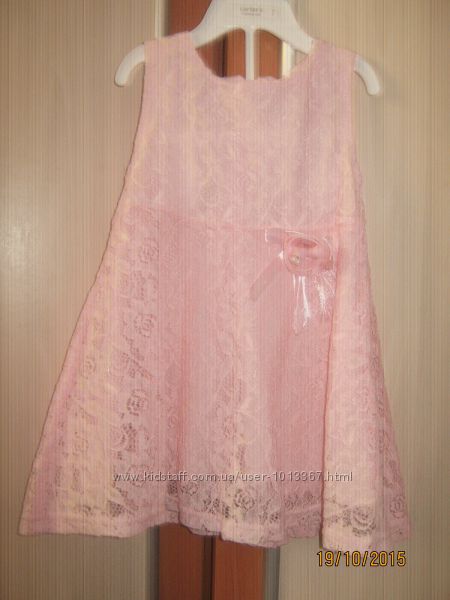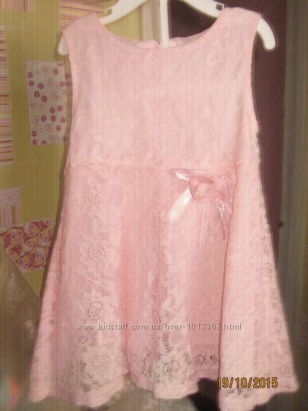 Продам платье цвет персик,нарядное,цветочек отстегивается,можно снять или переставить куда понравится на платье.Длина 45см,ширина под мышками 27см.На девочку 1,5-2,5 года на рост до 95 см.Одето один раз,следов носки не видно.Нюанс:на съёмном бантике когда фотографировала увидела распустилась одна ленточка,можно её отрезать,фото есть.