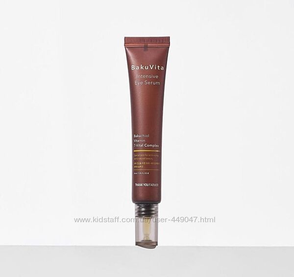 🔥 Сироватка для зони на навколо очей з бакучіолом і вітамінами C та E THANK YOU FARMER BakuVita Intensive Eye Serum 30 мл 🔥THANK YOU FARMER BakuVita Intensive Eye Serum — сироватка інтенсивної дії допомагає освіжити та освітлити зону навколо очей, а також підвищити пружність та надати їй сяйва.Призначена для використання після 20 років або з появою перших ознак старіння.