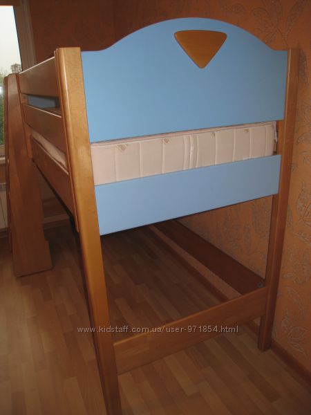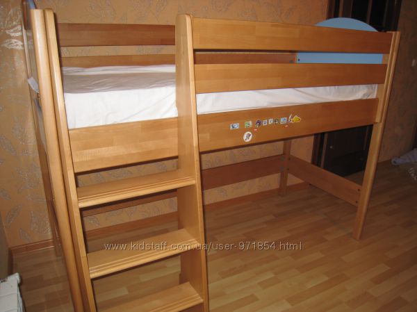 Кровать чердак в отличном состоянии. Спальное место 190 на 80 (без матраца). Очень удобная лестница. Глубокий верх. Частые ламели.Массив дерева - бук. Габаритные размеры: высота по синей спинке - 1,54, длина -1,98, ширина 90,5, ширина с лестницей - 115,5. Высота от пола до планки второго этажа 87,5.Другие объявления продавца