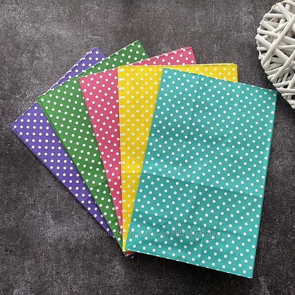 Пакети без ручок з прямокутним дном, кольоровий горошок рожевий, мятний, жовтий, зелений, фіолетовий