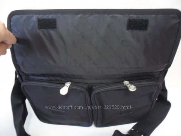 ― Снаружи, в передней части сумки, расположены два кармана на молнии, скрытые под одним большим клапаном на липучках, и одно небольшое отделение, тоже на молнии.