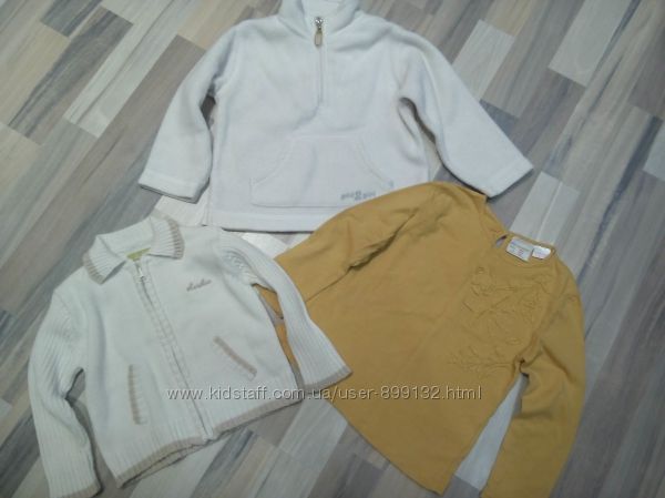 Фото 1 - футболка желтого цвета H&M 98-104 см, 2-4 г. Длина 37 см, ширина 31 см. 40 грн. ПРОДАНО Фото 2 - флисовая кофта молочного цвета на рост 98 см 2-3 г. в отличном состоянии - 70 грн.