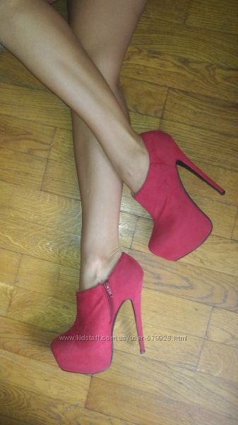 Шикарные малиновые ботильоны,реплика известного бренда ChristianLouboutin,эко-замш. Размер 38, стелька 24,5см, каблук 15см, скрытая