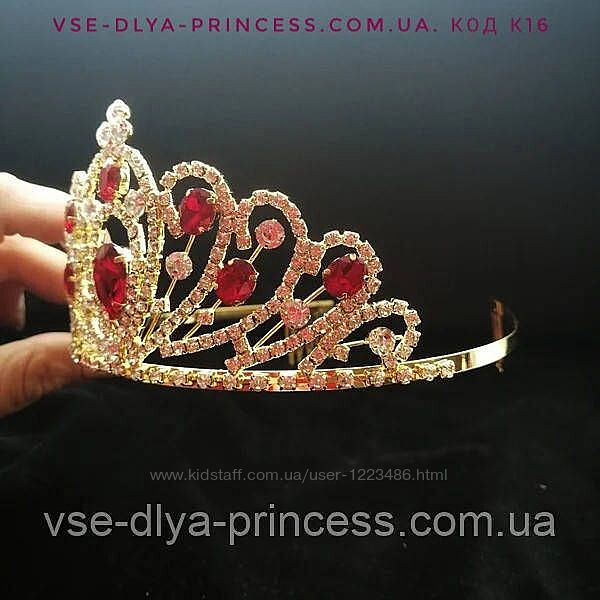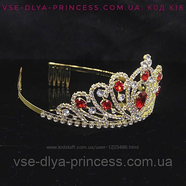 Подробное описание: Діадема корона тіара для дівчинки, прикраса в зачіску, під золото з червони