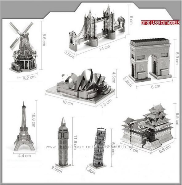 Сборная 3D модель вырезана лазером в металлических пластинках. Она великолепно детализирована лазерным гравированием и проста в сборке .