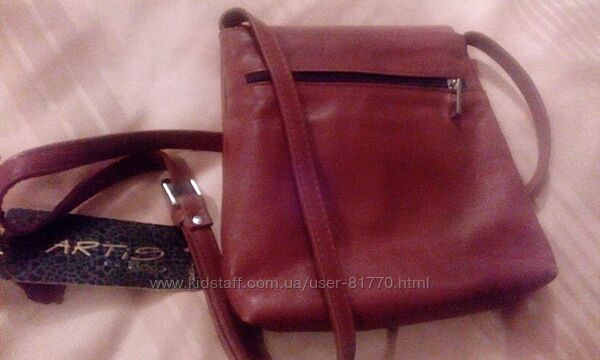 Компактная стильная сумочка Artis bags через плечо. Сумка закрывается на клапан с кнопкой и молнию. Внутри: одно отделение и карманчик на змейке. Снаружи на тыльной стороне - карман на молнии. Подкладка - текстиль . Длинная регулируемая ручка-ремешок, ее высота - 60 см.Состав : натуральная кожа