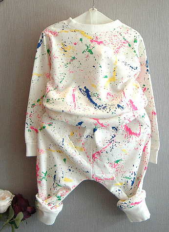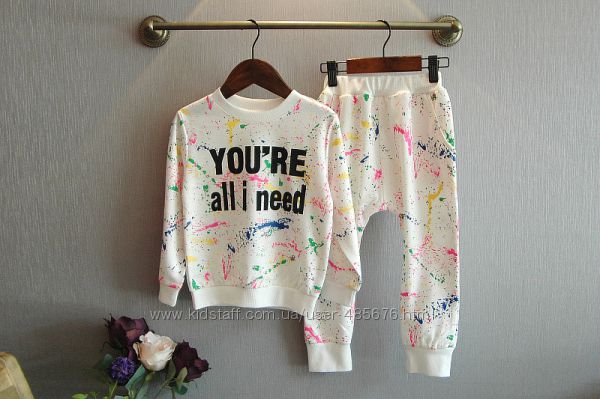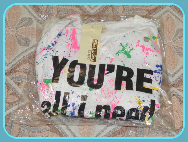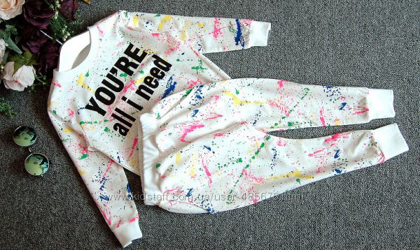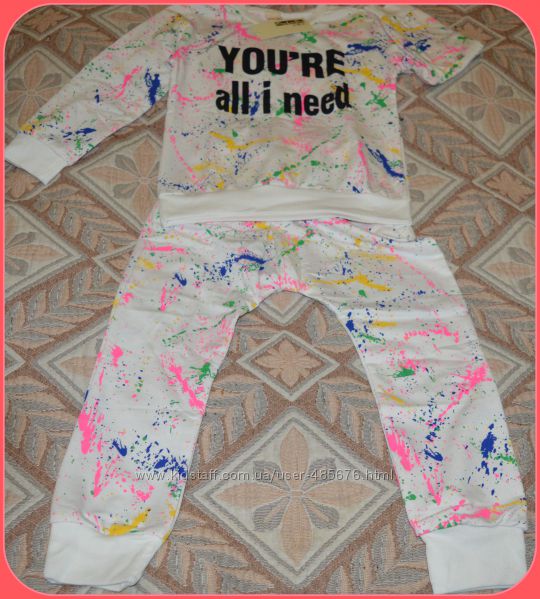 Продам яркий стильный,супер костюмчик-штаны и кофта. Костюм белый с цветными разводами,фирма Sha Liu Sha,размер 15-на 122-130 см. Ткань смешанный хлопок,приятный к телу,качество очень хорошее.ЗАМЕРЫ: Кофта- длина по спине 46см,длина рукава от шеи 48см,длина рукава от плеча 41см,ширина от подмышки до подмышки 36см,ширина от плеча до плеча 30см,длина от подмышки 30см.