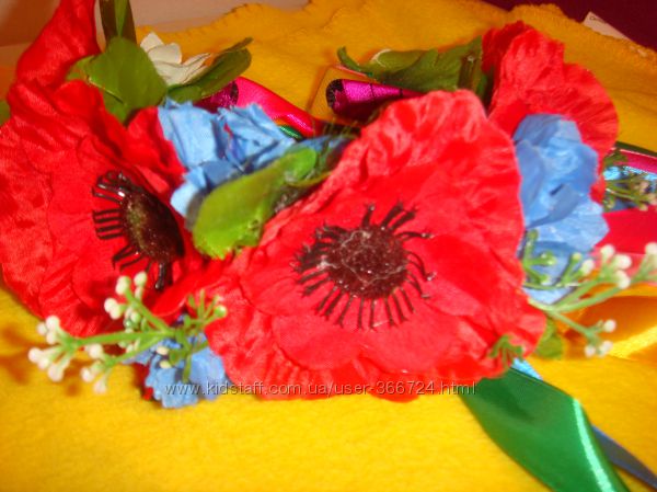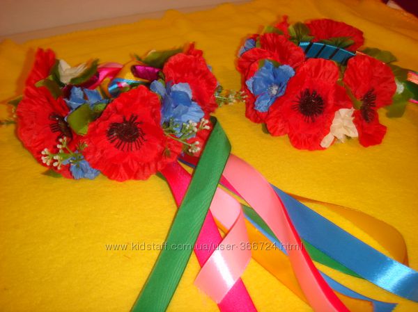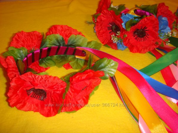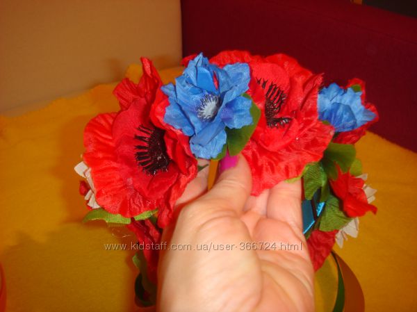 или разные цветы или только маки, разного цвета ленточки. Спрашивайте,