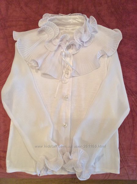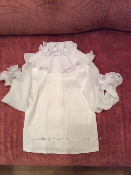Замеры блузочки на фото 4-6: Длина по спинке от воротника - 43,5 см. Плечи от шва до шва - 25,5 см. Ширина под мышками - 32 см. Длина рукава от плечевого шва - 40 см + рюшик. Талия - 31 см ПРОДАНО.