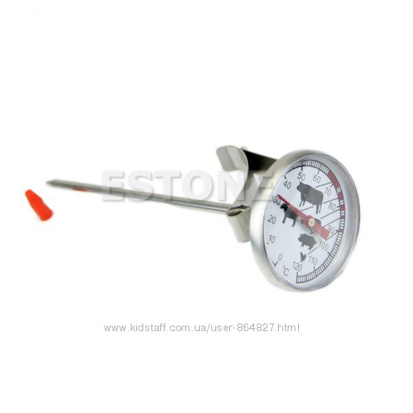 Термометр с пробником-датчиком из нержавеющей стали с диапазоном температур от 0 до 120 градусов Цельсия.