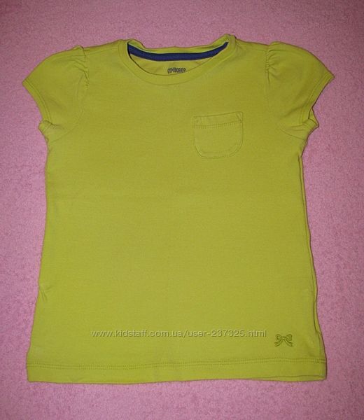 Замеры футболки Gymboree (салатовой): ширина по груди – 30 см, ширина по плечам – 23 см, длина рукава по наружному шву – 9 см, длина – 41,5 см.