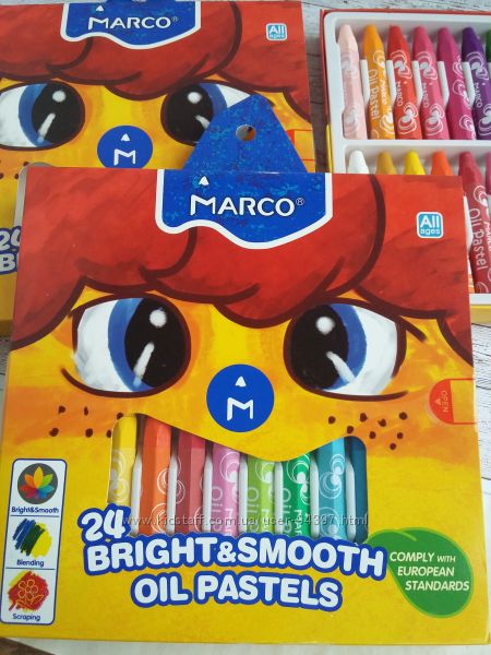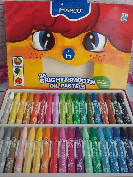 Пастель масляная Марко Marco 24шт, 36шт. яркие цвета, легко смешиваются. Замечательно подойдет для занятий в художественных школах и студиях. Масляная пастель, как правило, состоит из масляной основы смешанной с пигментами. Масляную пастель можно использовать с масляными красками. Масляная пастель обычно используется на бумаге, оргалите, загрунтованном холсте, так на других жестких поверхностях подходящих для масляной живописи. Масляная пастель по цвету более сочная, а при прокладке рисунка фактурная, осязаемая. Упаковка-картонная коробка.