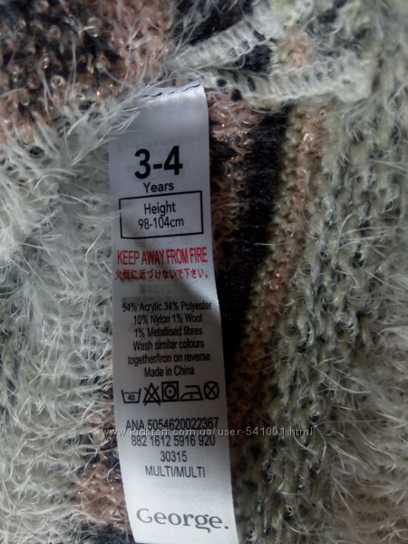 Подробное описание: Свитер для девочки 3-4г George Англия