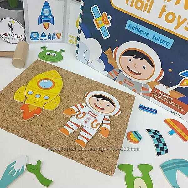 Подробное описание: Деревянная мозаика с молоточком Динозавры и Космос .